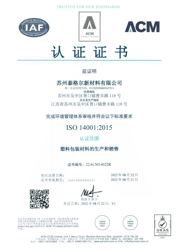 泰格尔集团成立于二零一三年,旗下设立苏州、无锡、佛山、合肥、芜湖五个生产基地。集团专注于新型包装材料、新型环保降解材料的研发、生产,致力于定制化包装工艺,自动化包装方案的创新,发展。